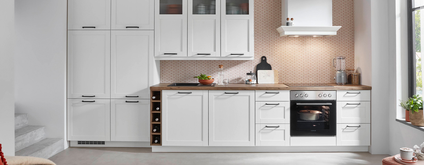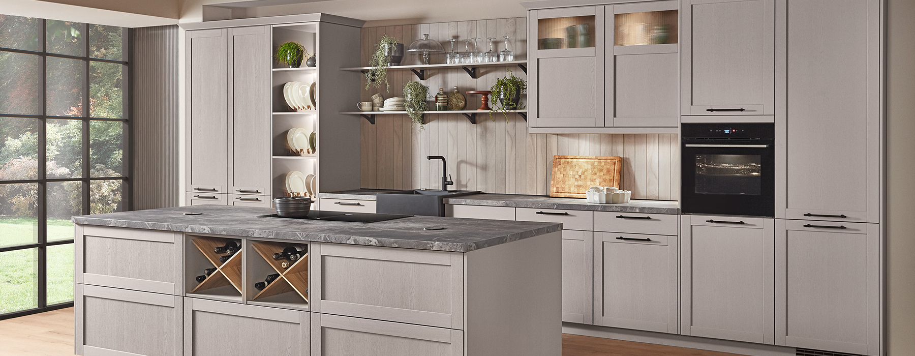 The Nobilia FRAME Handled German Kitchen offers a modern twist on classic cottage style, blending timeless character with contemporary elegance. Available in four beautiful colours, this range features framed cabinetry, soft natural tones and refined detailing — perfect for creating anything from a warm country-inspired space to a clean, Scandi-influenced kitchen. With its understated aesthetic and natural textures, FRAME brings a calm, inviting atmosphere to any home.